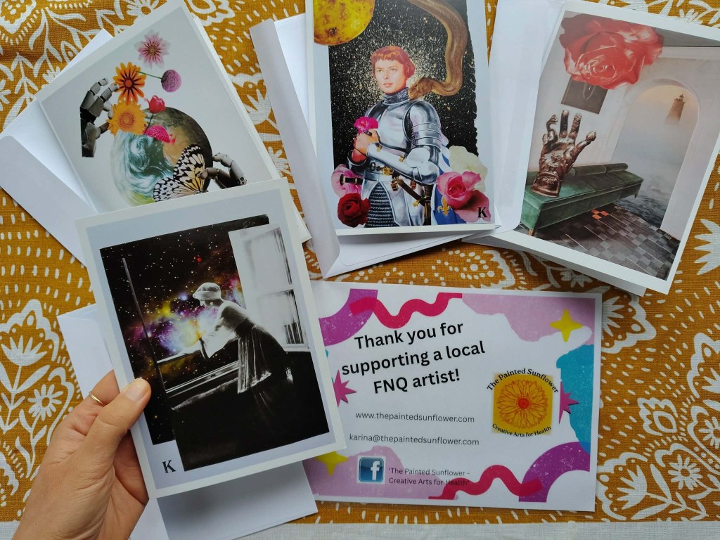 The Painted Sunflower is based in the Atherton Tablelands, FNQ, and run by local arts facilitator and educator, Karina Talbott. Our mission is to use the power of creativity to enhance wellbeing. We create and deliver personalised arts-based workshops that support health, self-expression, and social connection.