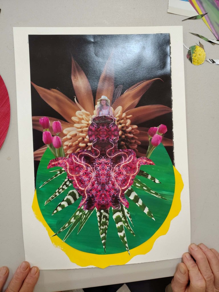 Thank you to the TRC for supporting this public art workshop! This collage workshop focused on using doorways in a surrealist style. Participants considered the symbology of doorways – transitions, beginnings, journeys, transformations – as well as working intuitively with colour and shape. Creative ideas all-round!